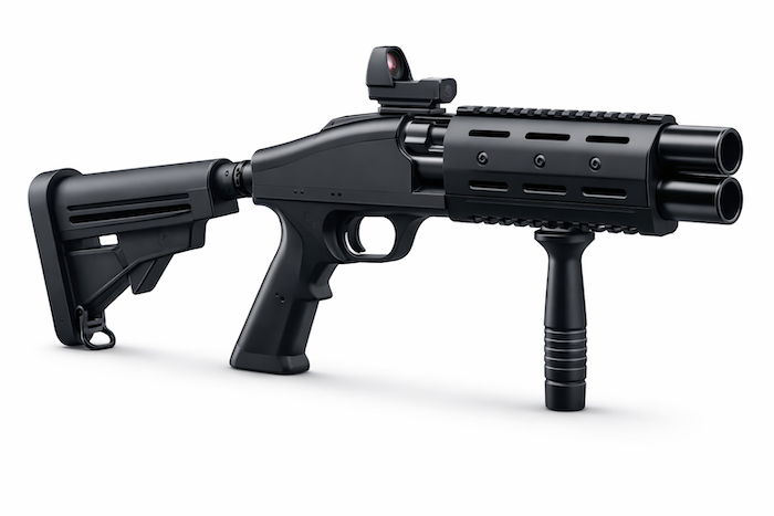 Die Waffe ist eine stark verkürzte Bockdoppelflinte mit integrierten Kompensatoren. Als Kipplaufwaffe ist sie mit zwei Schuss geladen, sofort einsatzbereit und lässt sich durch die Ejektoren - Hülsen werden beim Abkippen ausgeworfen - schnell wieder beladen. Ein Drall sorgt für die nötige Stabilität des Netzes bzw. der Netze, je nach verwendeter Munition. Das gab es noch nie und vereint aus allen Waffentechniken das Beste zur Drohnenabwehr.