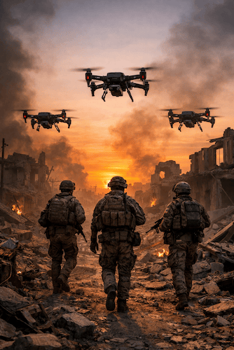 Zum einen werden unsere Truppen von Drohnen in der Überwachung, im Angriff und auch in der Verteidigung schon heute unterstützt. Das wird in der Zukunft noch mehr.